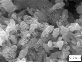 XRD pattern in Fig.6 confirms α-Fe2O3 crystal structure of obtained ferric oxide powder. As shown in Fig.7, α-Fe2O3 powder is well-dispersed spindle spherule with a length-to-diameter ratio of (3-4):1, and its average particle size is about 0.5 μm.