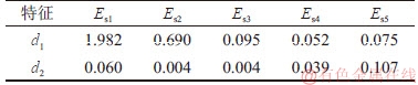为了验证本文算法的可行性,选取S700K转辙机在2个不同时刻下发生故障时所对应的功率曲线作为待检样本。图5所示为广铁集团长沙电务段现场某S700K转辙机在2个不同时刻发生故障时所对应的功率曲线。为了便于用模糊聚类算法进行运算,令2条曲线为待检曲线1和待检曲线2,分别记为d1和d2。利用EEMD与样本熵算法对图5中的曲线d1和d2求特征值,如表2所示。经过现场工人的检修,确定d1和d2所对应的故障类型与表1中的故障f3和f5一致。