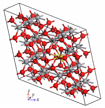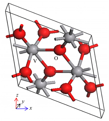 The electronic structures and optical properties of pure VO2 and Au-doped VO2 were studied using the periodic DFT calculations implemented in the CASTEP code, using the generalized-gradient-approximations (GGA) in the form of the Perdew–Wang 91 (PW91) exchange-correlation functional. A simplified version of the rotationally invariant LDA+U method was used, where the adopted values of U in the LDA +U were set at 2.5 eV for the vanadium d electrons. Calculations were performed as nonmagnetic. The energy cutoff was set at 340 eV, and a 1×1×1 uniform Monkhorst-Pack k-point grid was used for M1 phase. The convergence tolerances for geometry optimization calculations were set to the maximum energy change of 2×10–5 eV/atom, the maximum displacement of 2×10–4 nm, the maximum stress of 0.1 GPa and the maximum force of 0.08 eV/nm.