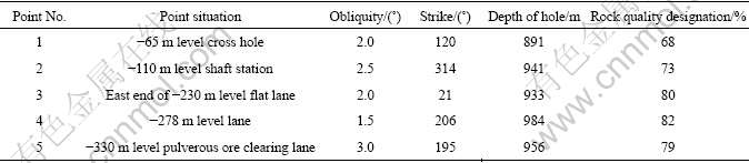 Considering the above rules, the mining design and obtained geological data, five representational in situ stress measuring points were selected in Beiminghe Iron Mine. Table 1 lists the situation and hole of the five points.