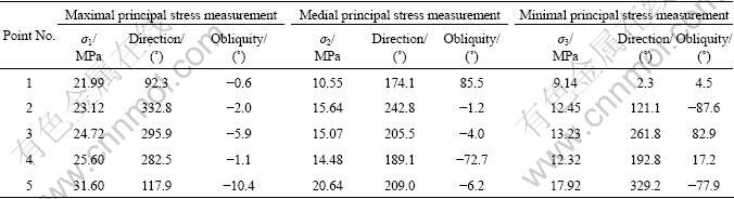 (1) In the three principal stresses of every measuring point, two of them are nearly in horizontal direction, and most of the obliquities are less than ±10?, the maximal one is 17.2? in measuring point No.4. And there is also a principal stress nearly in vertical direction, and the vertical included angles are less than 18?.