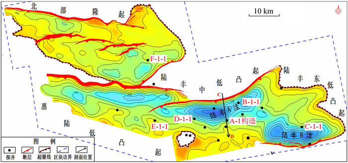 3) 陆丰凹陷下文昌组良好的储、盖配置关系与断陷湖盆特殊的构造、沉积演化过程密不可分,湖盆初始断陷期在洼陷缓坡沉积的辫状河三角洲砂岩为主要储层,进入强烈断陷期湖平面快速上升,在缓坡沉积一套中深湖相泥岩为良好的区域盖层;此后,受“断隆联控”机制影响,缓坡带被抬升形成构造-地层圈闭,接受晚期油气充足。