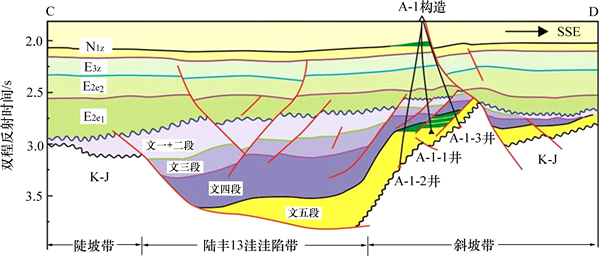 人们对陆丰凹陷的油气勘探工作始于20世纪80年代,根据勘探目的层系的不同可分为2个阶段。早期受珠江口盆地“陆生海储”成藏规律的指导,勘探主要针对新近系海相沉积层系,先后在陆丰凹陷珠江组下段发现了4个油田和多个含油构造,获得超亿立方米的探明+控制储量,证实了凹陷内陆丰13洼为富生烃洼陷。自2008年以来,中国海油开始围绕富烃的陆丰13洼开展古近系复式油气藏勘探,提出“恩平文昌并重、由浅及深、以点带面”的勘探策略。在三维地震采集技术方面开展了多轮提高三维地震资料品质和精度攻关,采用叠前深度偏移技术对资料进行处理,在此基础上确定了一大批古近系构造。2014年通过部署钻探A-1-1井在埋深近4 km文昌组中获得日产超200 m3工业油流,三级地质储量超3×107 t,达到大中型油田的标准,为在珠江口盆地古近系陆相地层中寻找可动用优质大中型油田提供了很好的例证。本文作者通过对控制陆丰13构造带古近系油气成藏要素的精细解剖,总结古近系大中型油田的地质特征与形成条件,以便为进一步推动凹陷内古近系勘探以及在珠江口盆地其他地区寻找古近系油气田提供参考。