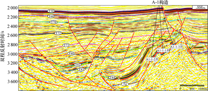 图7 展示大型斜坡构造的过A-1构造典型地震剖面