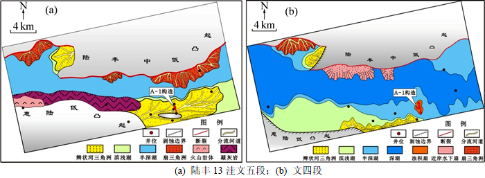 图8 陆丰13洼文五段和文四段沉积相图
