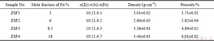 表1 不同配比的Zr-Si-Fe混合粉末熔渗所得复合材料的密度与孔隙率