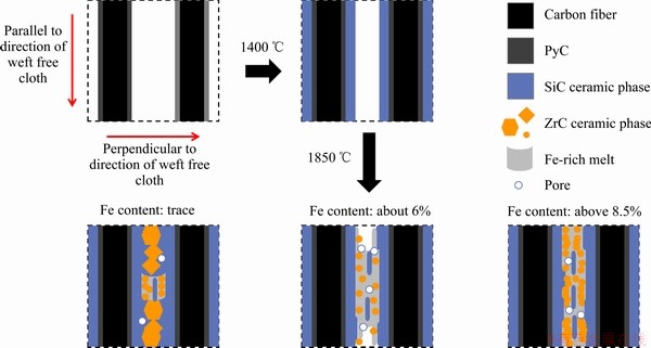 Key words: C/C-ZrC-SiC composites; reactive infiltration method; FexSiy; microstructure; ablation performance