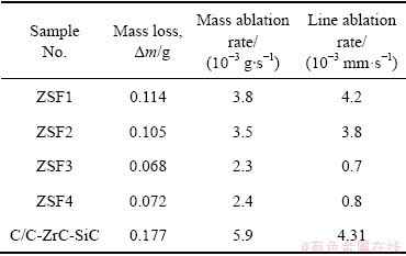 Table 2 Ablation results of FexSiy modified C/C-ZrC-SiC composites