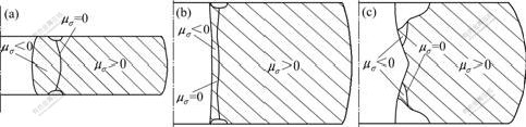 图6所示为不同摩擦条件下圆环压缩过程的变形分区对比,其中阴影部分为塑性区。