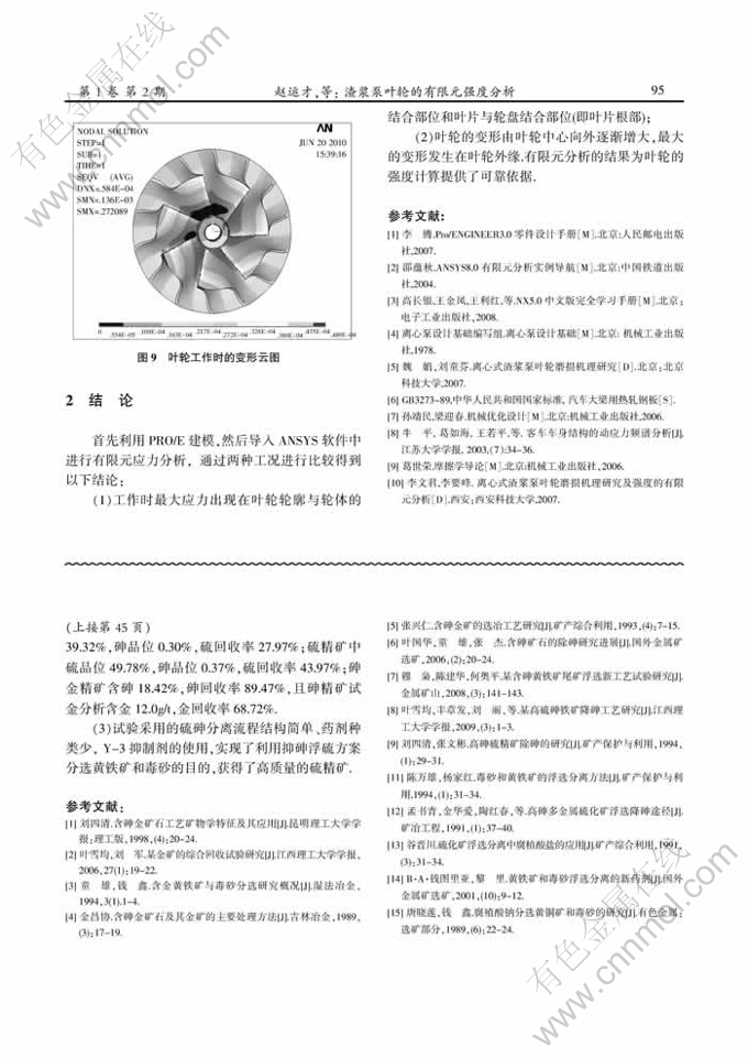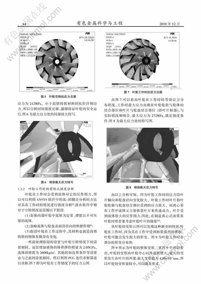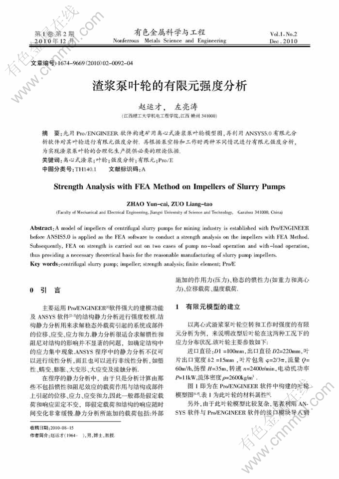 关键词:离心式渣浆;叶轮;强度分析;有限元;Pro/E