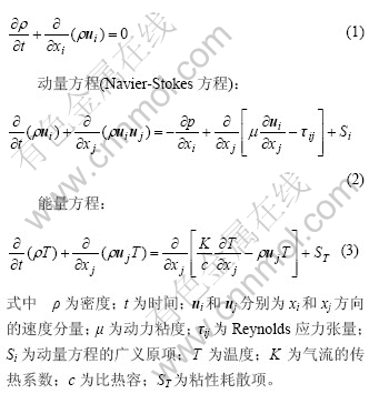 在标准k—ε模型中,湍动能k和湍动耗散率ε方程分别为