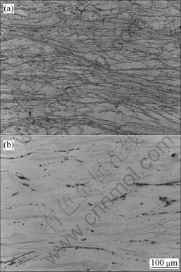 Fig.7 Microstructures of AZ80 alloys under different conditions: (a) F state, 250 ℃, 1 s-1; (b) H2 state, 400 ℃, 1 s-1