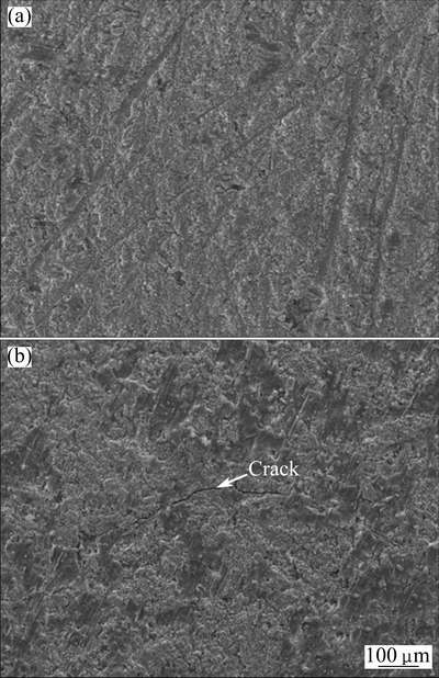 Fig. 10 SEM images of surface morphologies of diffusion coating after 1000 h oxidation (a) and 120 cycles oxidation (b) at 900 °C