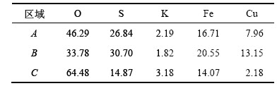 表1 黄铜矿浸渣的EDS分析结果(摩尔数分数)