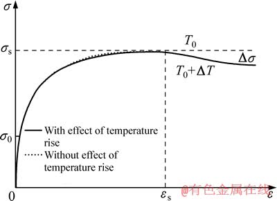 Fig. 2 Schematic illustration of flow stress curve showing effect of temperature rise