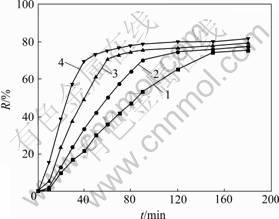 以煤为还原剂的攀枝花钛铁矿精矿等温还原试验结果见图1(其中,R为还原度)。