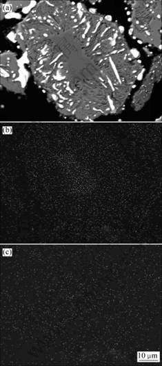Fig.6 SEM of Panzhihua ilmenite reduced at 1 000 ℃ for 60 min and surface distribution of Mg and Mn