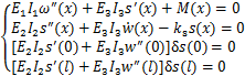 对式(21)分部积分,并利用δω(x)与δs(x)的任意性可得到相应的控制微分方程及自然边界条件如下: