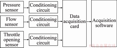 In this study, the experiments are designed based on orthogonal method. The test engine is HL495Q four cylinders EFI gasoline engine, whose displacement is 2.84 L, calibration power and corresponding speed is 76.8 kW and 4000 r/min, respectively, the idle speed is 720 r/min. The test selects the CW260 eddy current dynamometer. The hardware platform consists of the host computer and PCL-818 data acquisition card. The intake pressure sensors (CY-YD-200A) and the flow mass sensors (D5400) are installed in the inlet pipe. The entire system structure is shown in Figure 3.