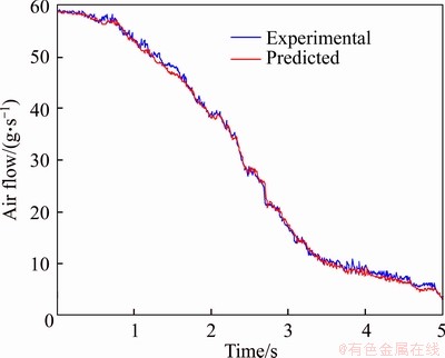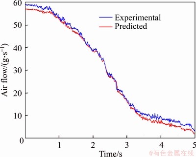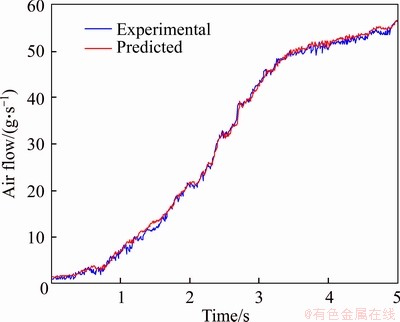 In acceleration condition, chaos RBF neural network model predicted the value of intake flow and the actual value is shown in Figure 10, in deceleration condition, chaos RBF model predicted value of intake flow and actual value is shown in Figure 11. At run time, the chaotic optimization of RBF neural network has faster convergence speed. The reason for this precise match in the presence of data also includes improved approximation performance of the network.