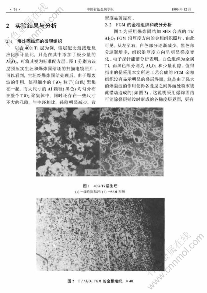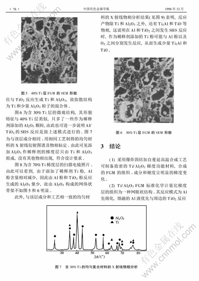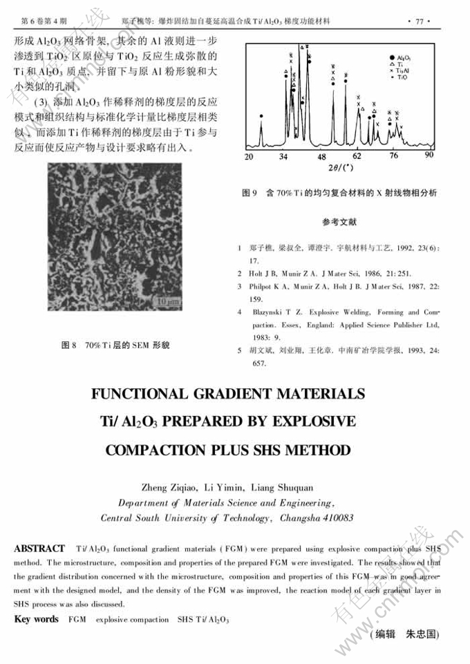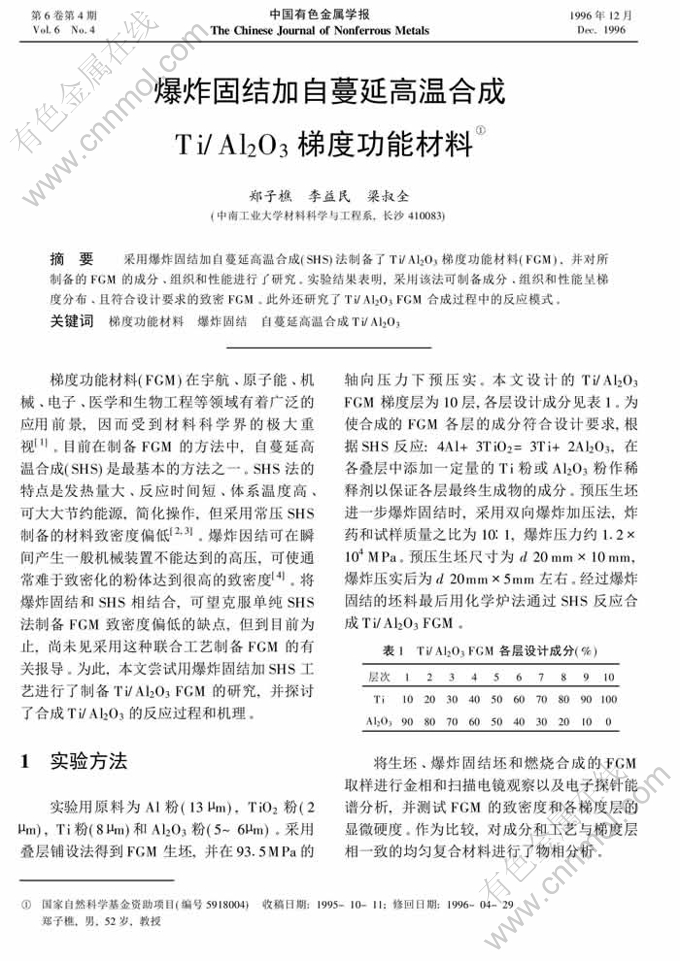爆炸固结加自蔓延高温合成Ti/Al2O3梯度功能材料①