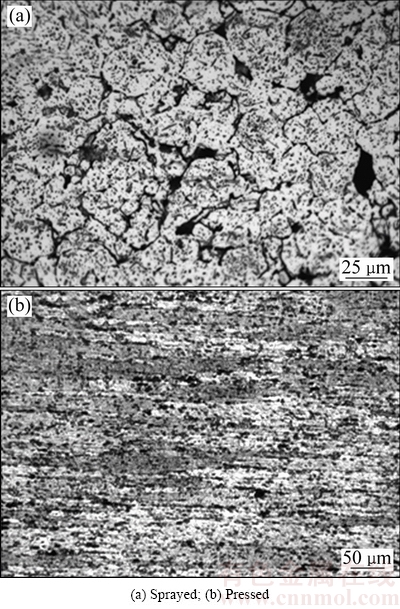 Fig. 1 Optical structure of spray-formed 7055 aluminum alloy under different states