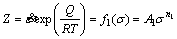 Z=f(σ)=A[sinh(ασ)]n (3)