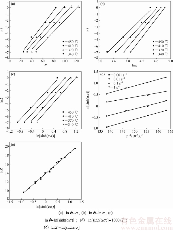 式中:Z为Zener-Hollomon参数,它描述了不同变形温度和应变速率对合金热变形过程中流变应力的影
