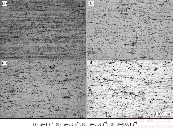 Fig. 5 Optical microstructure of spray-formed 7055 aluminum alloy at 450 ℃ and different strain rates