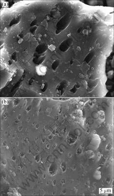 Fig.1 SEM images of bamboo charcoal at different heat-treating temperatures: (a) 900 ℃; (b) 2 800 ℃