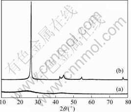 Fig.2 XRD patterns of bamboo charcoal powers at different heat-treating temperatures: (a) 900 ℃; (b) 2 800 ℃