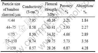 表1 石墨化竹炭粒度对复合材料性能的影响