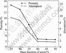 Fig.4 Effect of resin content on porosity and absorption of composite