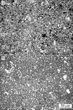 Fig.5 Surface metallographs of composite bipolar plate with different mass fractions of resin: (a) 30%; (b) 50%