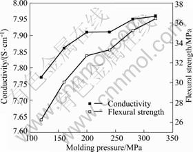 图9 成型压力对复合材料电导率和抗弯强度的影响