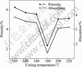 Fig.12 Effect of curing temperature on porosity and absorption of composite