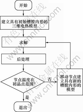 通过APDL语言,循环调用ANSYS中的前处理、求解和后处理模块,根据槽帮表面节点温度重新确定其坐标值,直至最终得到节点温度在设定误差范围内的槽帮形状。其主要运行步骤如下:
