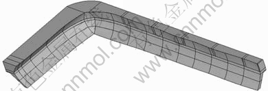 图5所示为计算所得3D槽帮形状示意图。由图5可以看出:槽帮在小面比大面厚,而在角部处最厚。