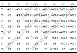 同理,可得U2-U2j,U3-U3j判断矩阵如表2和3所示。