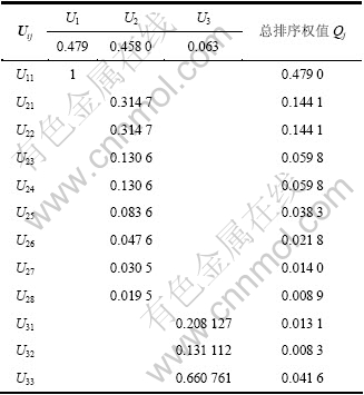 (3) U3-U3j:W3=[0.208 1,0.131 1,0.660 8]t,λmax3=3.053 6,CI3=0.026 8,RI3=0.52,CR3=0.051 6<0.1。