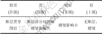 现针对石人沟铁矿露天转地下最佳开采模式的选择,运用上述方法进行综合评判。露天矿转地下开采模式有空场法、充填法及崩落法等,而适合石人沟铁矿的开采模式(以采矿方法分类)有无底柱分段崩落法(简称崩落法开采模式)、分段凿岩阶段出矿法(简称空场法开采模式)、分段凿岩阶段出矿嗣后充填法(简称阶段充填法开采模式)、上向水平分层充填法(简称分层充填法开采模式)等4类开采模式[14-16]。采用建立的露天转地下开采模式综合评判模型对拟选用的4类开采模式进行综合评判,综合评价指标体系见表6。其中地质构造因素为定性表达的因素,根据评分标准(表7)来确定,规定Ⅰ级评8分,Ⅱ级6分、Ⅲ级4分、Ⅳ级2分;由于不同的采矿方法爆破当量不一样,炸药单耗大的,爆破当量大,因此在评定井下爆破当量时,用炸药单耗来评价。