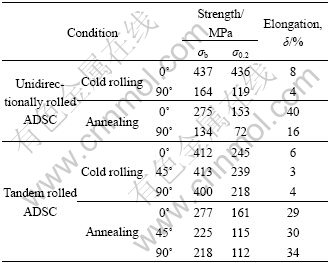 2) An appropriate tandem rolling technology used in this work can greatly reduce the anisotropy of mechanical properties. And the microstructures of tandem rolled ADSC alloys are quite different from those of unidirectionally rolled alloys even under the same condition.