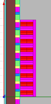假设模型轴向长度为无限长,初级铁芯部分的渗透率无限大,为便于Halbach阵列的解析分析,引入磁场矢量磁位A,则磁通密度的矢量公式为