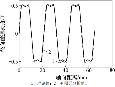 Fig. 6 Distribution of radial flux density with initial permanent-magnet parameter