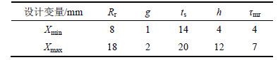 在固定安装长度、行程、极槽数下,作动器极距、槽距、槽口为确定值,由作动器分析模型,选取支撑杆半径Rr、永磁体厚度h,气隙g,槽深ts、磁体径向充磁轴向长度τmr为设计变量,由支撑杆强度、初级次级不干涉、最大外径确定变量Rr,g和ts取值范围,由基于气隙磁场的磁体参数化分析可确定h和τmr取值范围。如表4所示。