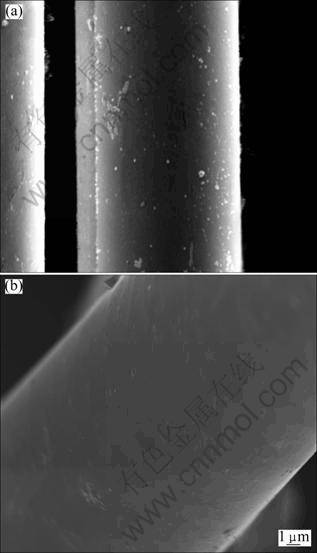 Fig. 2 SEM images of as-received (a) and PyC coated (b) Al2O3 fibers