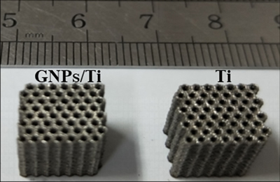 Figure 2 Images of SLM Ti and GNPs/Ti porous structure