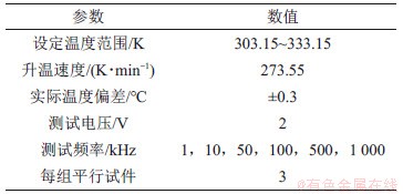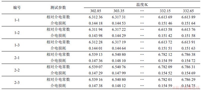 本试验的各项测试条件如表2所示。温度区间为303.15~333.15 K,在6个不同频率下进行相对介电常数测量,共计120个测试点。