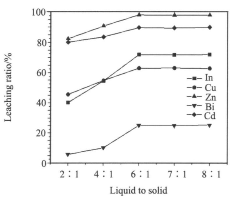 Fig.3 Influence of ratio of liquid to solid on leaching ratio
