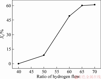 Figure 4 Crystal volume fraction (Xc) of μc-Si:H thin films deposited under different hydrogen flow ratio